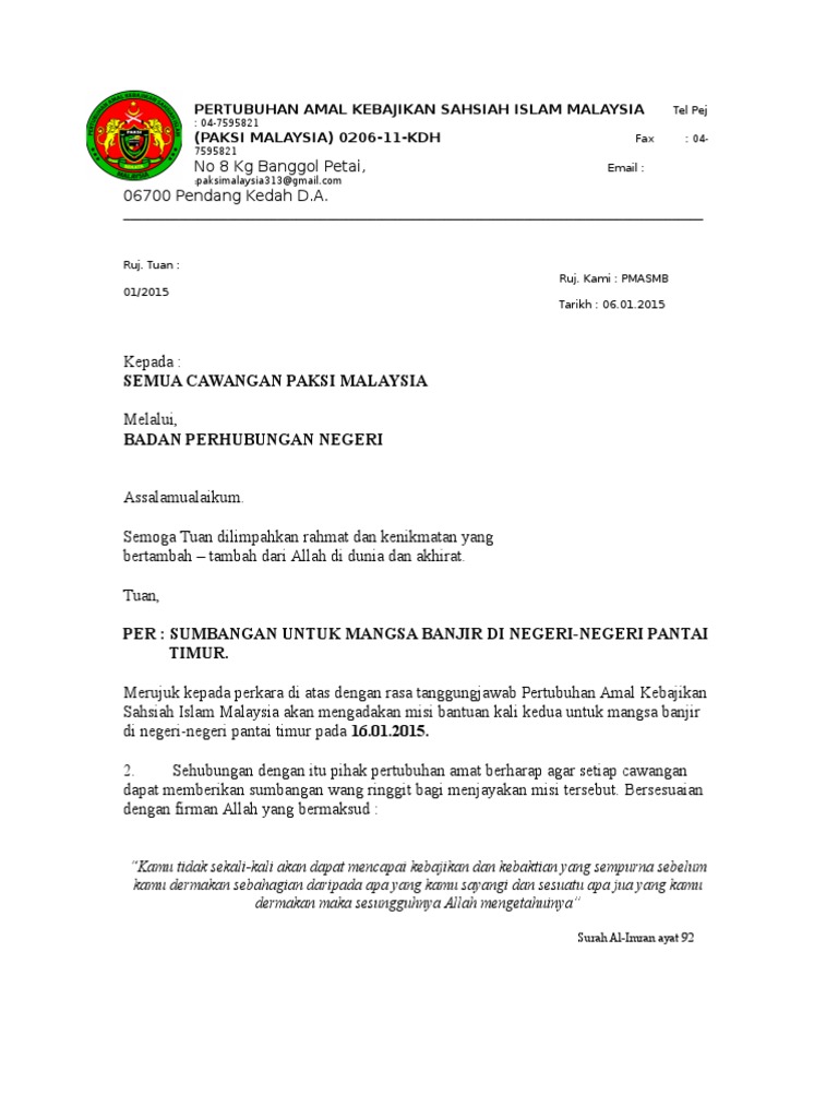 Contoh Surat Rasmi Sumbangan Banjir Temblor En Otosection